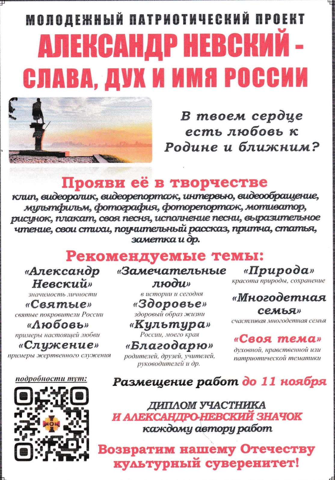 Молодёжный проект «Александр Невский - слава, дух и имя России»