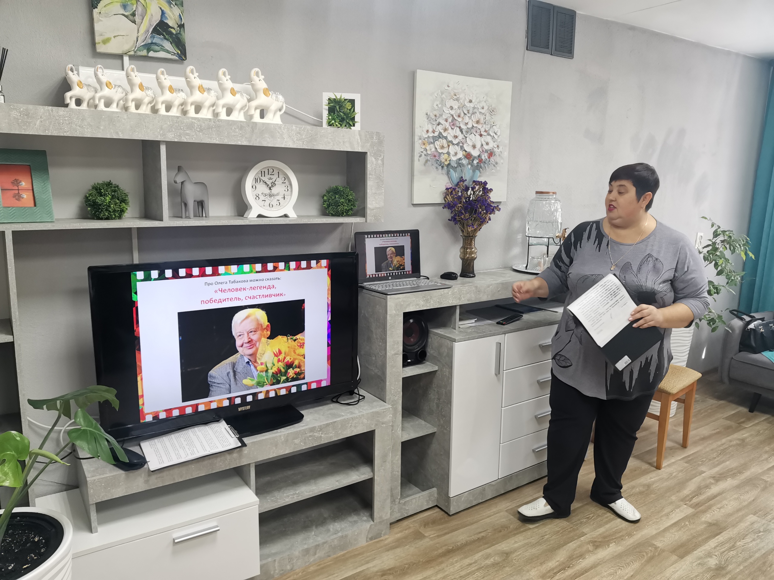 29 августа Центральная библиотека провела вечер-портрет «Олег Табаков – человек праздник» для отдыхающих отделения дневного пребывания Многопрофильного центра «Семья». Гости мероприятия узнали много интересного о жизни и творчестве актера, а также вспомнили фильмы с его участием, мультфильмы, которые он озвучивал. Присутствующие посмотрели отрывки из его лучших фильмов: «Семнадцать мгновений весны», «Дартаньян и три мушкетера», «Сирота казанская», «Ширли-мырли», «Несколько дней из жизни Обломова» и др.
